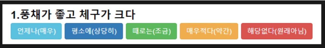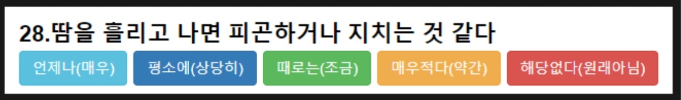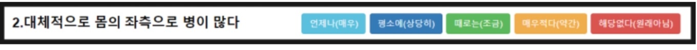 지문에 맞게 5개의 답변 중 자신에게 해당되는 것을 선택하면 돼요.