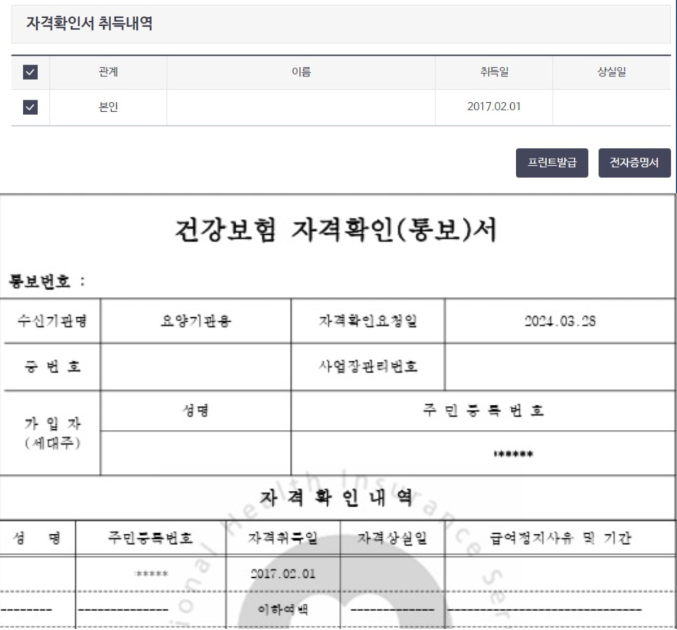 여러가지 업무를 볼 때에 건강보험자격득실확인서 또는 건강보험자격확인서를 요구하는 경우가 있어요.