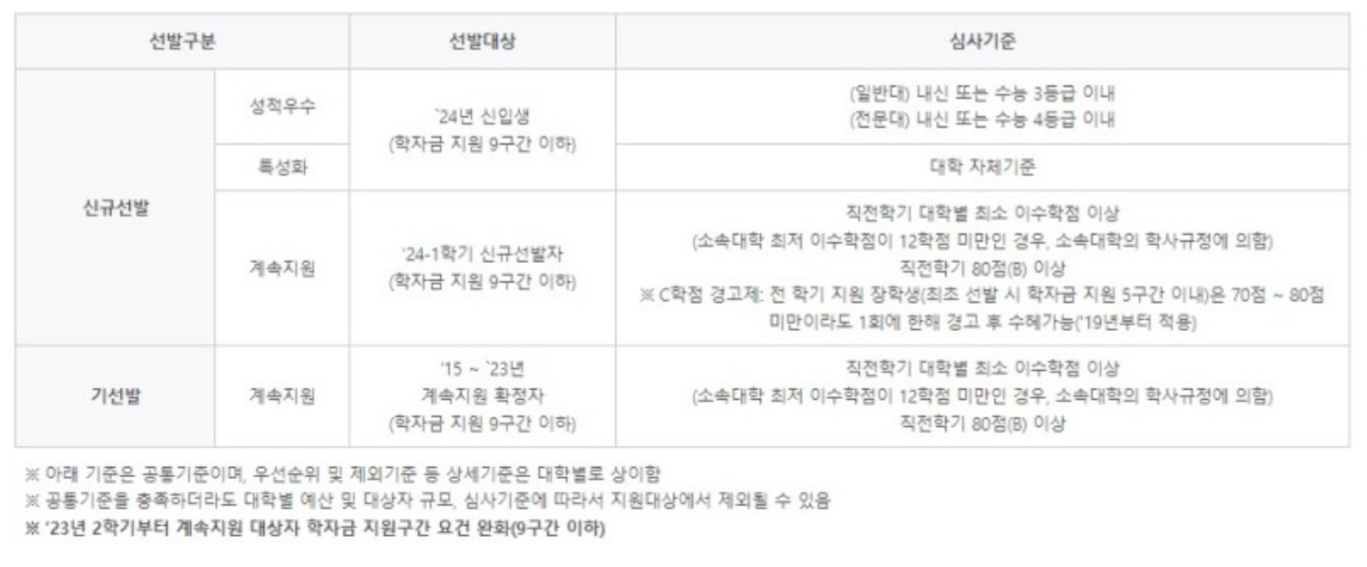 - 재학생 : '15년도 ~ '23년도 선발된 계속 지원 확정자