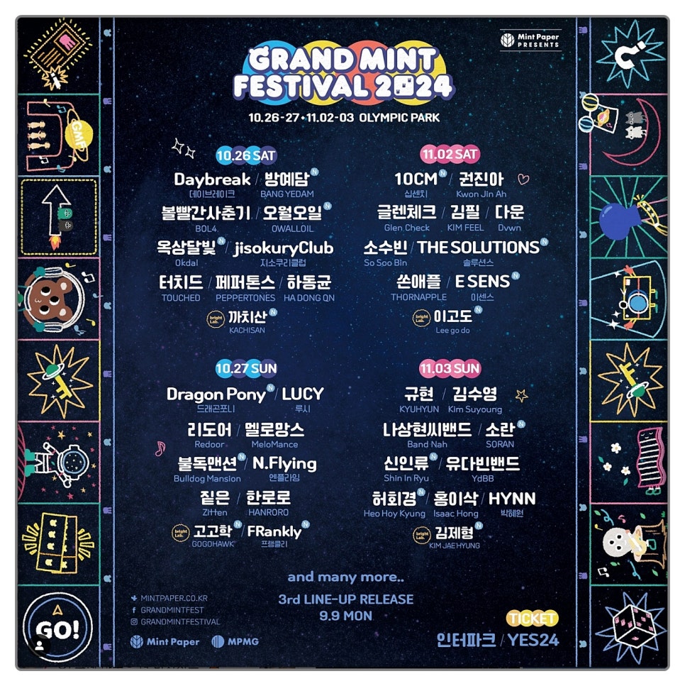 그랜드 민트 페스티벌(Grand Mint Festival, GMF) 2024는 총 4일 동안 서울 올림픽공원에서 열립니다.
