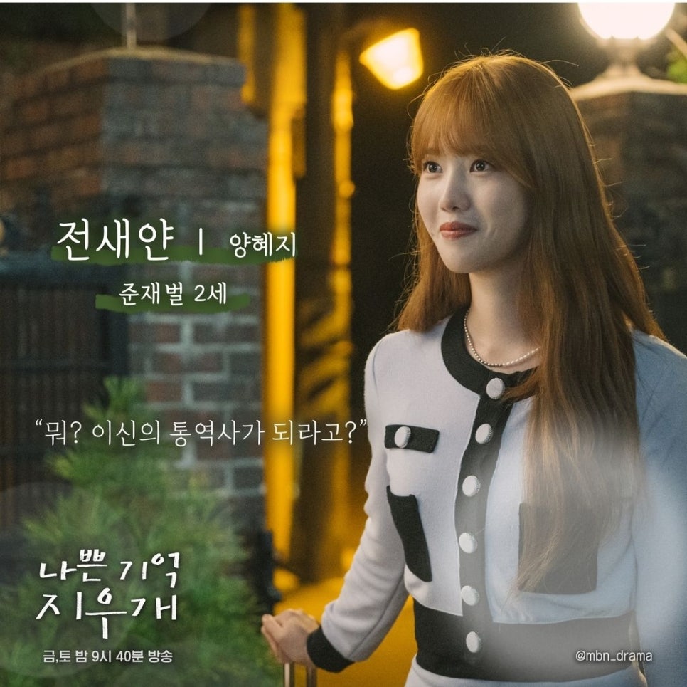 양혜지가 연기하는 전새얀은 준재벌 2세로, 어려움 없이 자라 사랑스럽고 긍정적인 인물입니다.