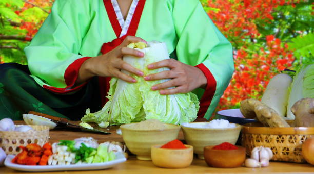 가족과 이웃이 모여 배추를 절이고 양념을 버무리는 풍경은
