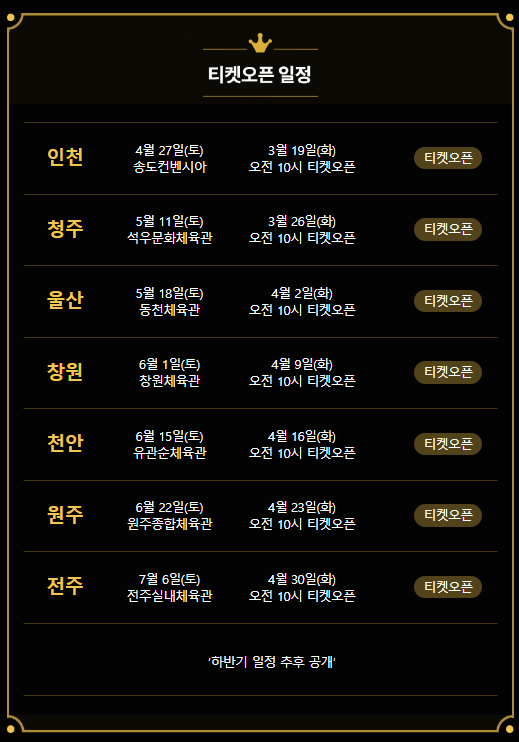 하반기 '라스트 콘서트'의 예매 일정은 8월 27일부터 10월 15일까지 지역별로 순차 공개된다.