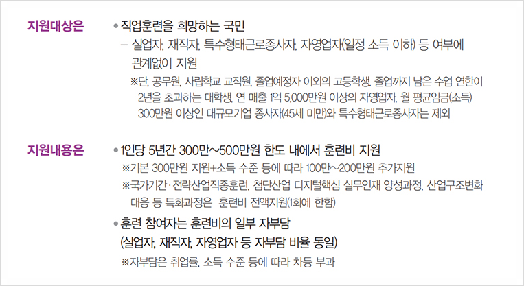 단, 카드 사용 한도와 유효 기간이 정해져 있으므로, 교육 과정 선택 시 이를 유념해야 합니다.