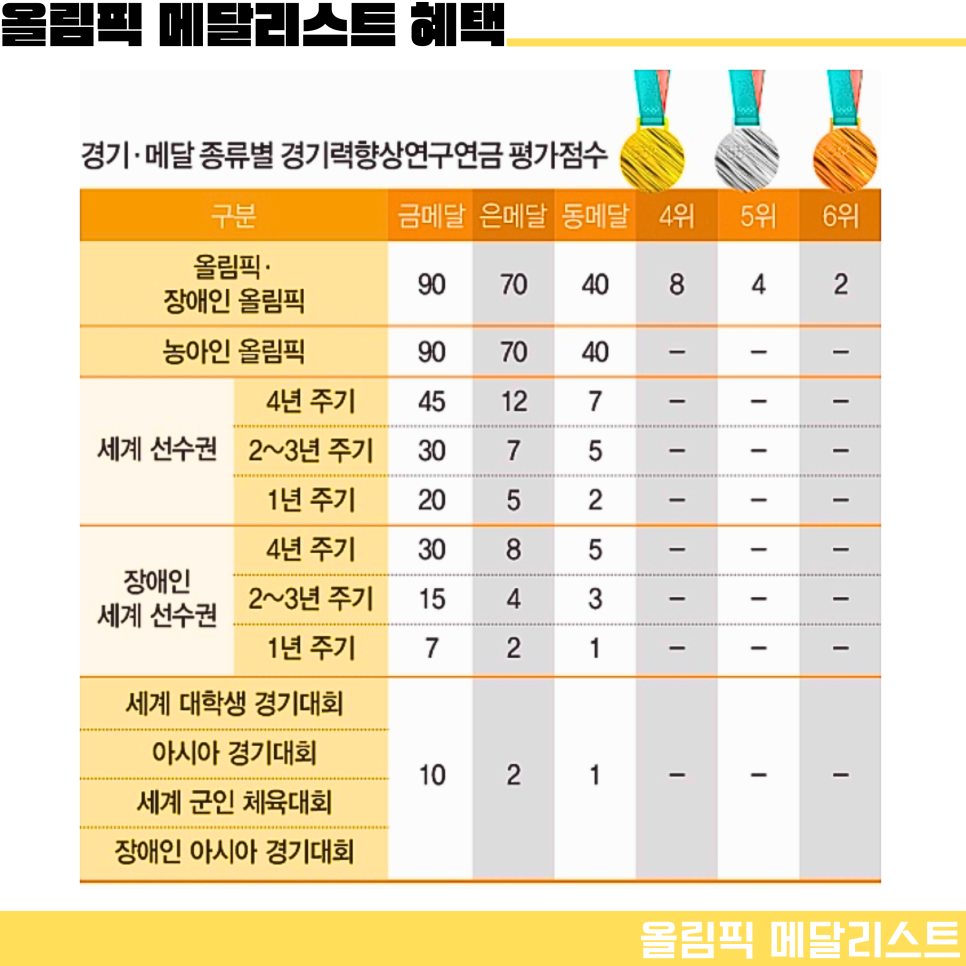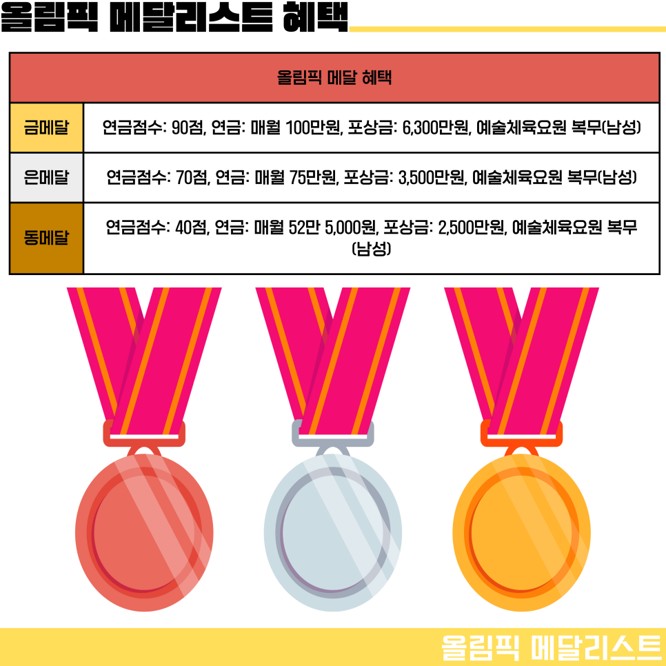 이번 포스팅에서는 금, 은, 동메달 수상자들이 받는 연금과 포상금, 그리고 기타 혜택에 대해 자세히