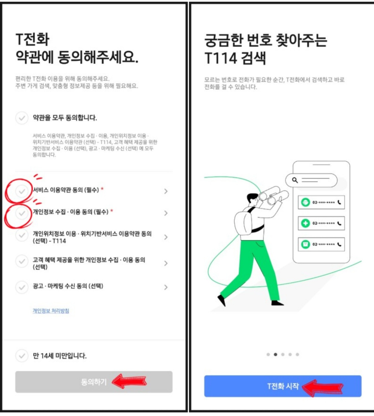 모든 설정을 완료해 주시고 T전화 시작을 눌러주세요.