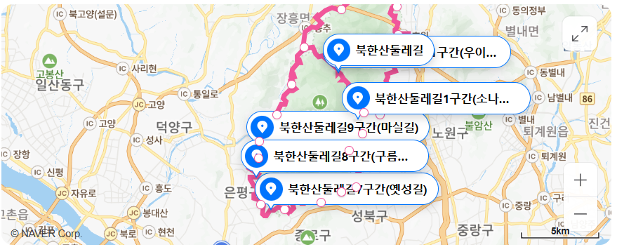 북한산 둘레길은 총 21개 구간, 약 71.5km로 나뉘어 있어 자신에게 맞는 코스를 선택할 수 있는 점도