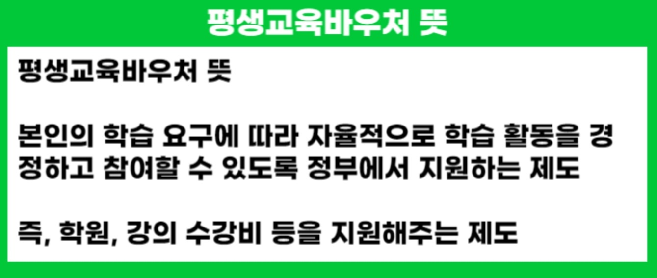 쓰임새가 한정되어서 부담을 줄이려고 평생 교육 바우처를 알게 되었어요.
