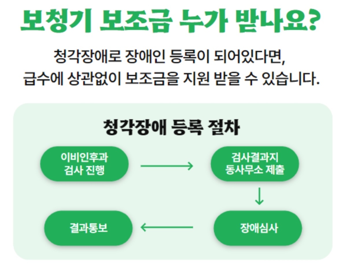 대상자에 해당되려면 청각장애로 장애인 등록이 되어 있어야 해요.