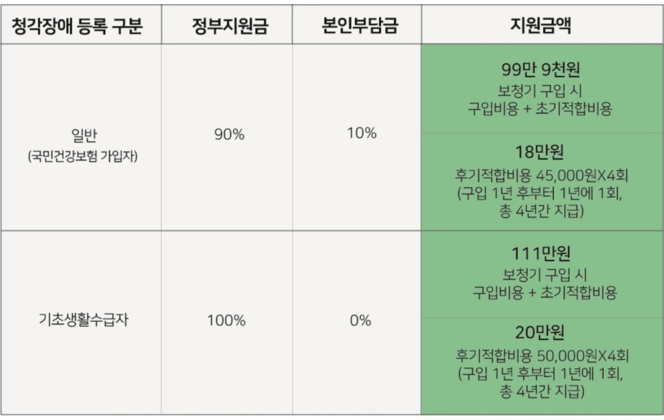 기초생활수급자라면 보청기 구입 시 구입 금액의 100%를 지원받을 수 있어요.