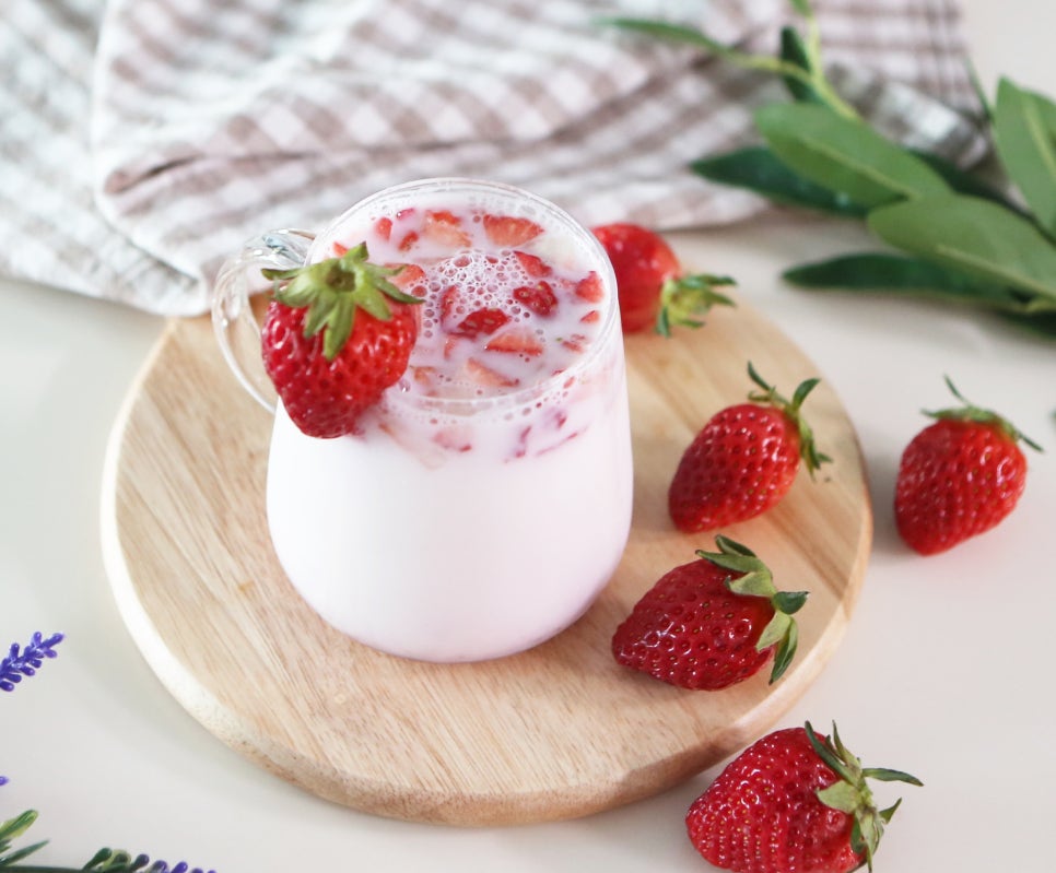 신선한 딸기를 활용해 달콤한 딸기라떼를 만들어 볼까요?
