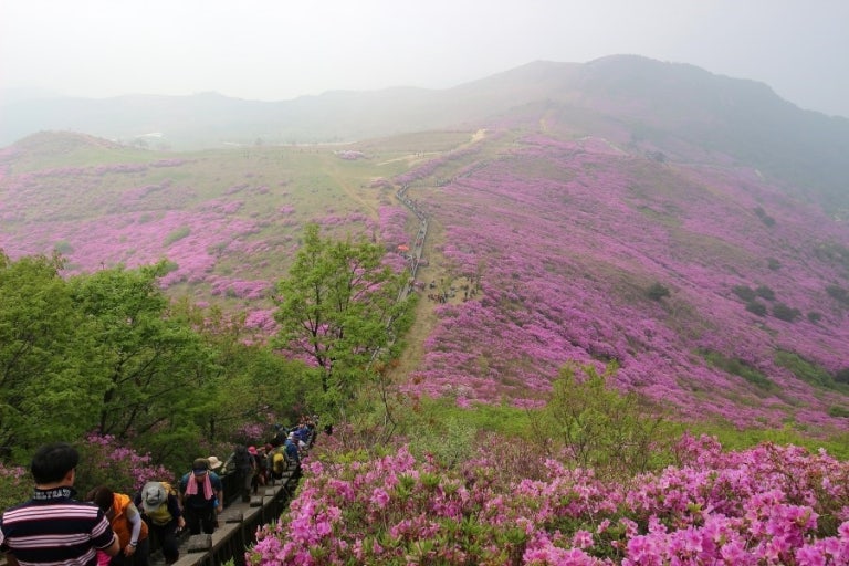 특히 해발 1,108m 정상 부근의 철쭉 군락지는 한국의 알프스라 불릴 만큼 아름다운 풍경을 자랑하죠.