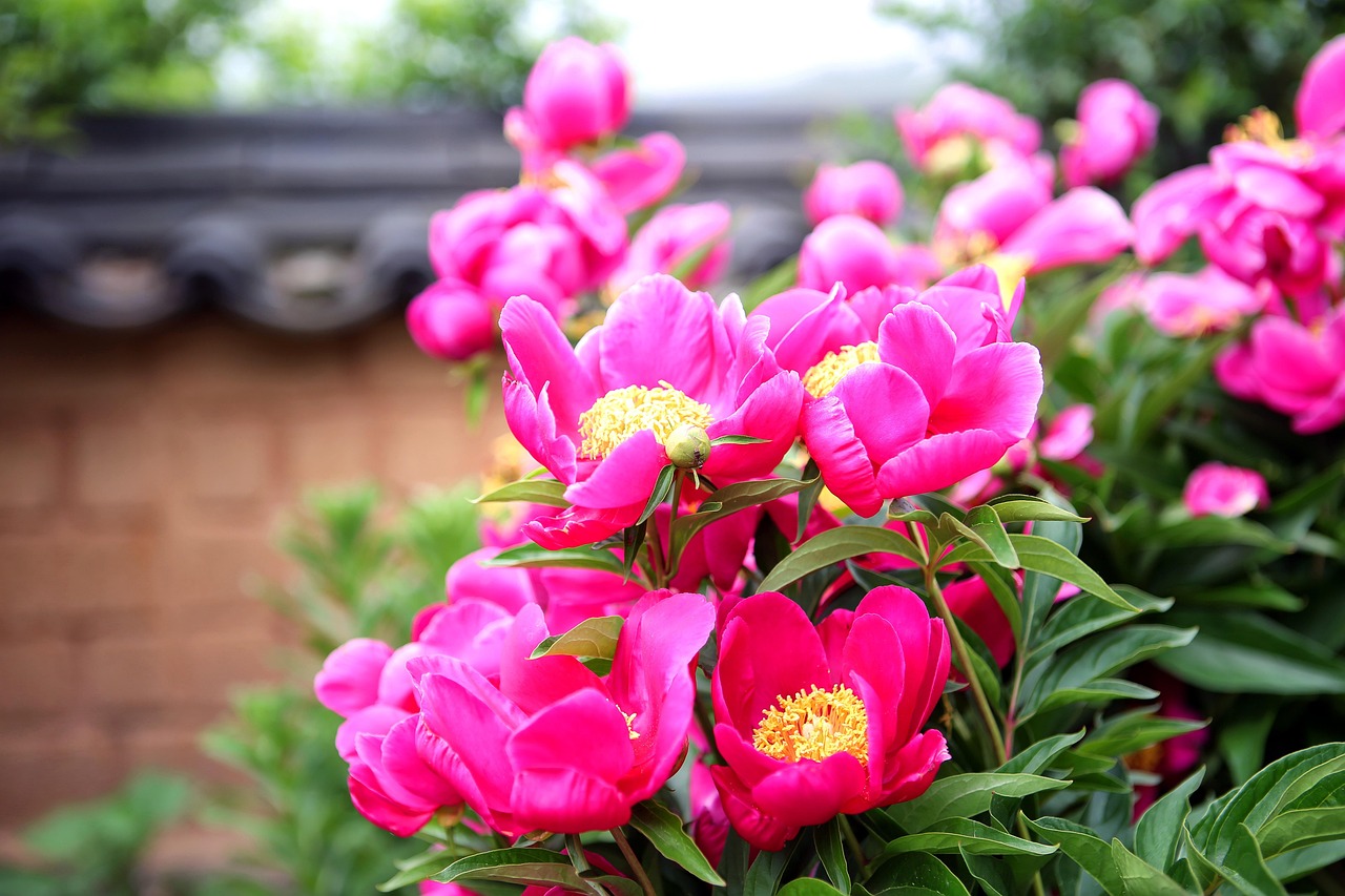고즈넉한 시골 마을 풍경 속에 핀 연분홍과 흰색 작약은 자연스럽게 마음을 차분하게