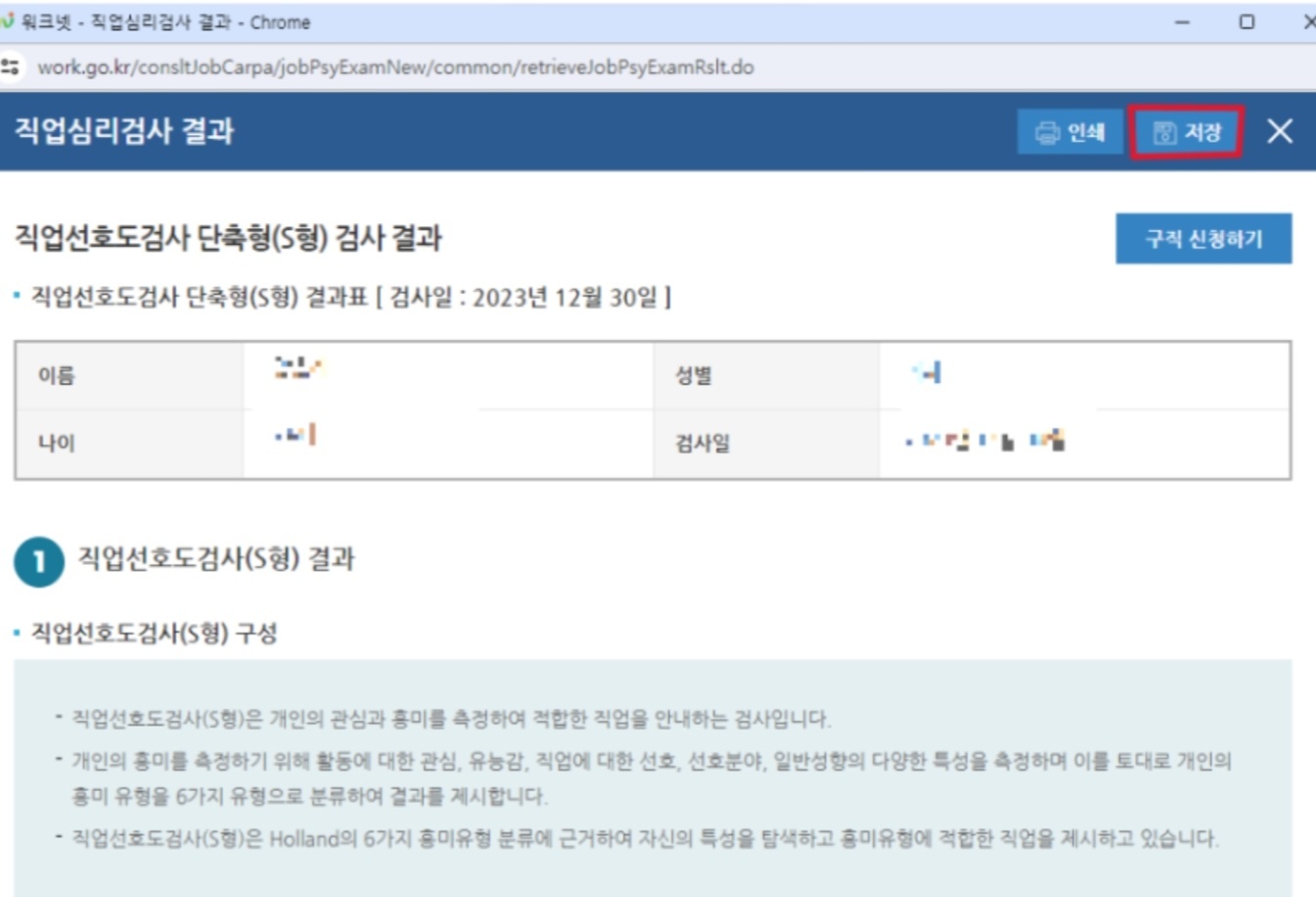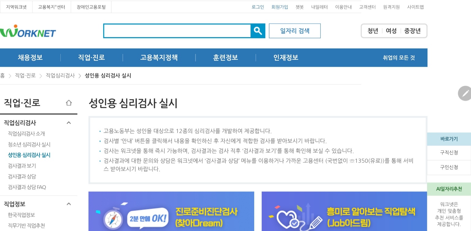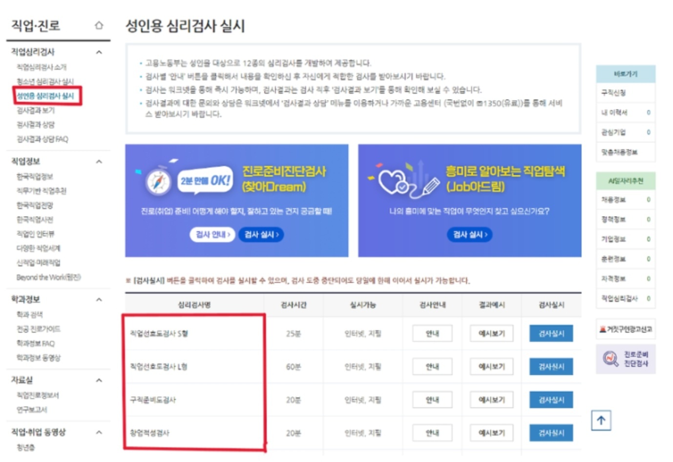 클릭 -> 워크넷 직업선호도 심리검사 바로 가기