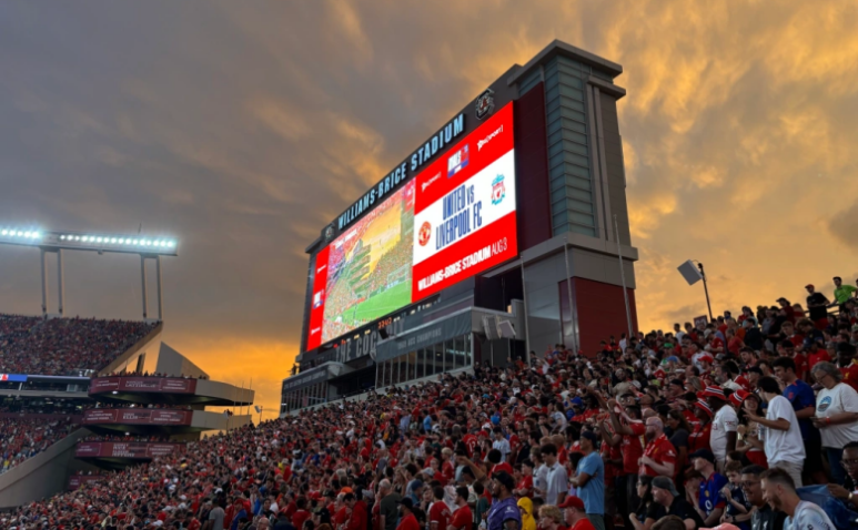 로스앤젤레스 소파이 스타디움에서 열린 아스널과 맨유의 경기에는 7만 명의 관중이, 필라델피아의