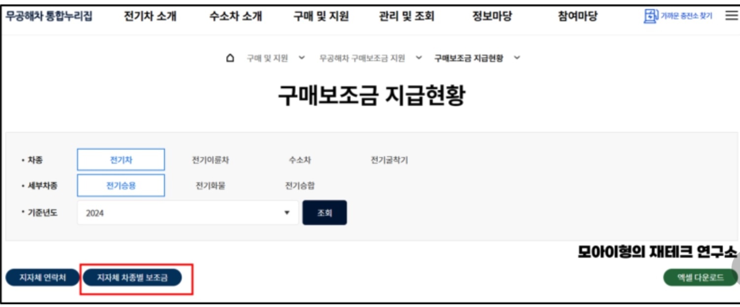 2024 차종별 전기차 보조금 지역별 보조금 조회방법