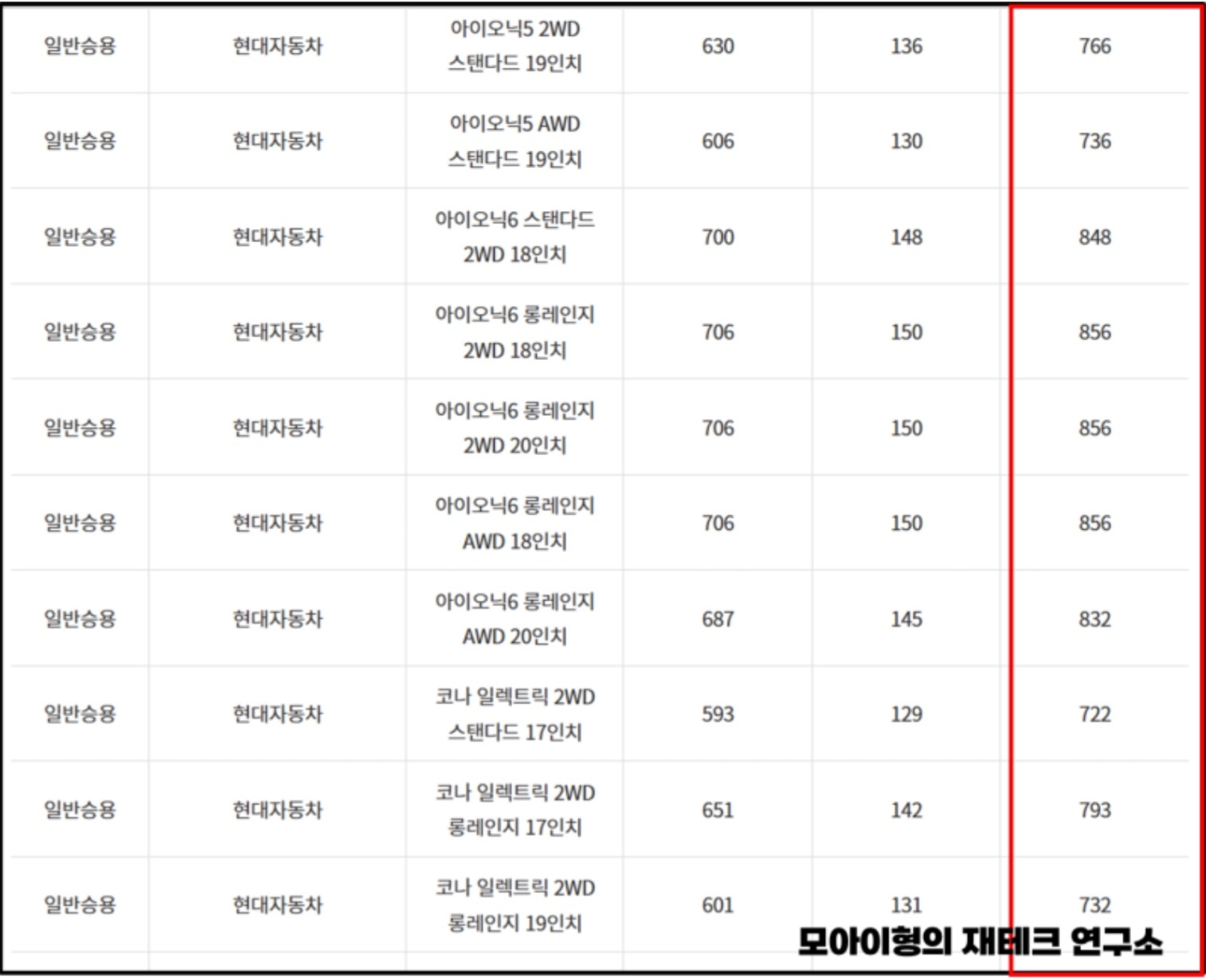 아래 표를 보시면 차종과 제조사, 모델명이 나옵니다. 예를 들어 현대의 G80 AWD 19인치는 381만원의 지원금을 받습니다.