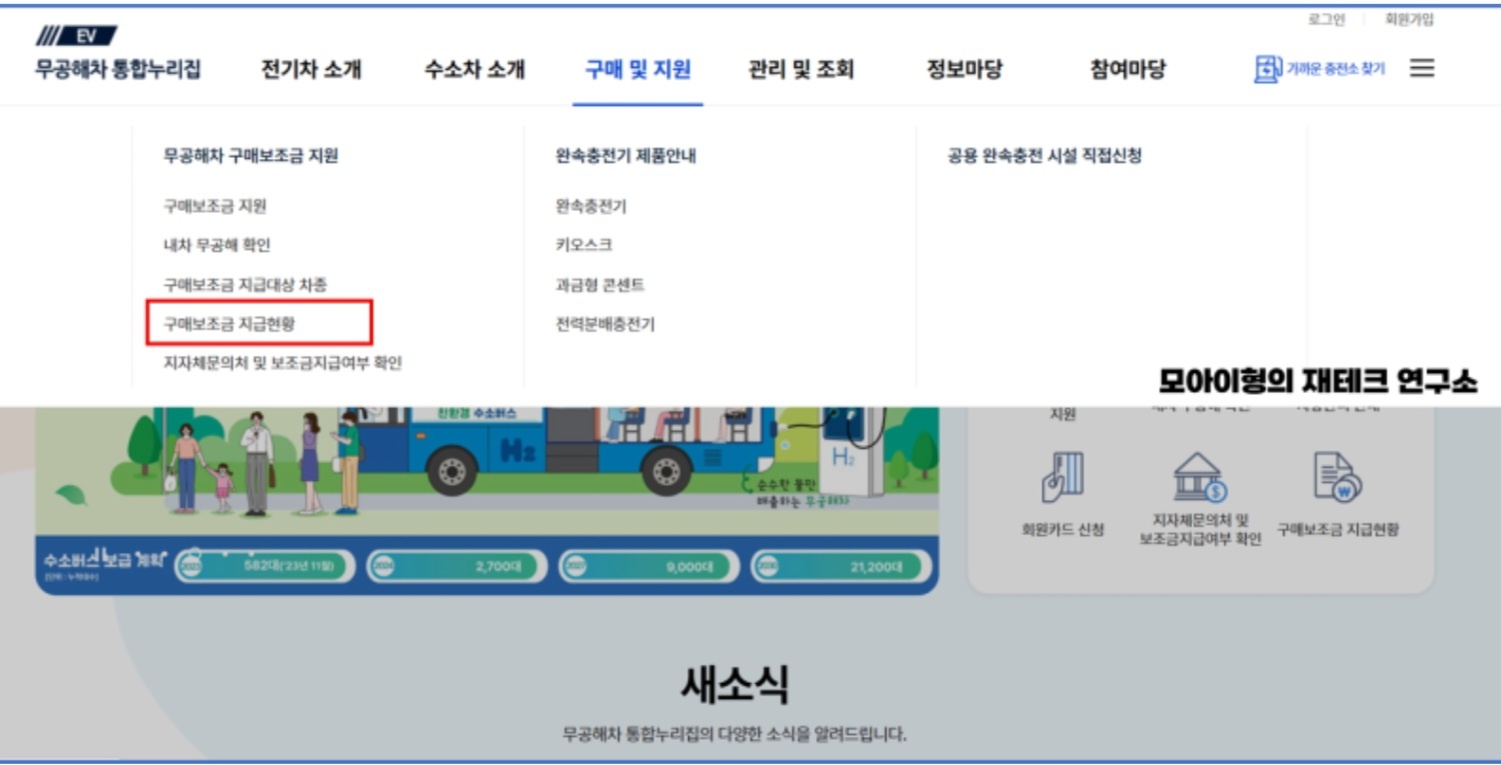 머저 저기차 보조금을 확인할 수 있는 '무공해차 통합누리집' 사이트를 방문합니다.