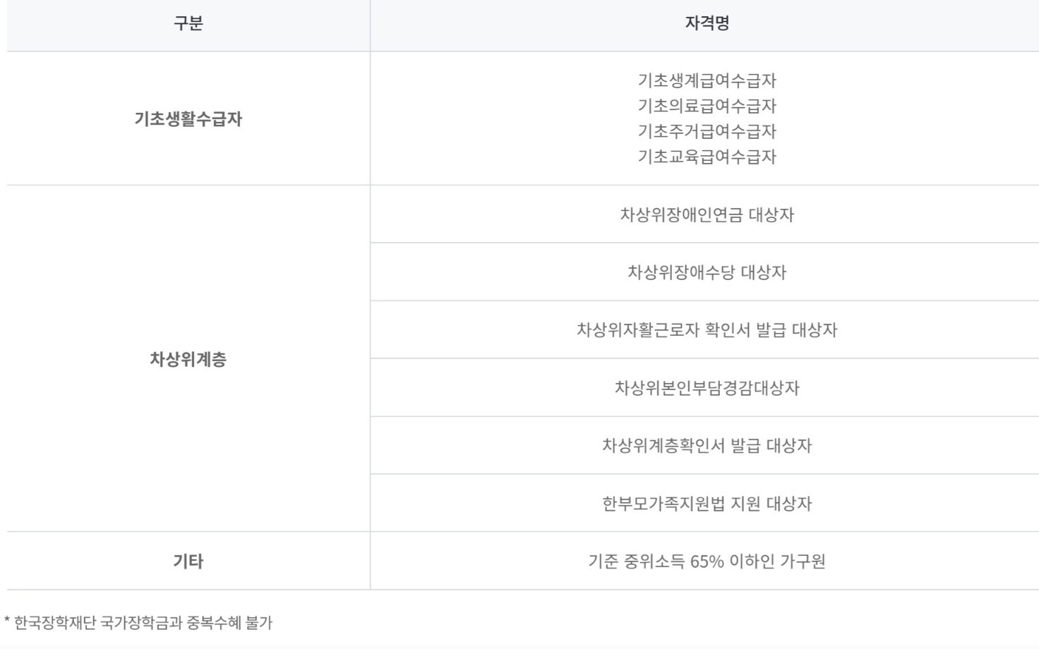 - (기초생활수급자 및 차상위계층) 행정안전부 행정정보공동이용망 연계를 통한 지원대상 여부 확인