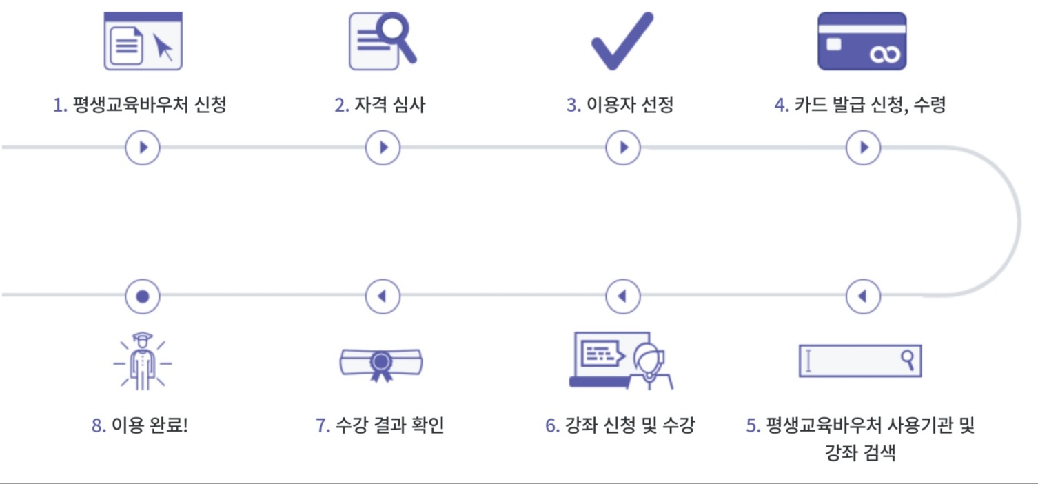 학습자가 본인의 학습 요구에 따라 자율적으로 학습 활동을 결정하고 참여할 수 있도록 정부가 제공하는 평생교육 이용권이예요.
