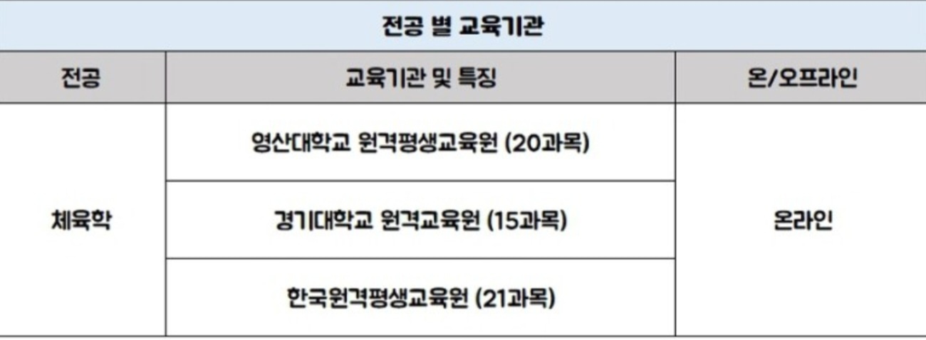 학점 은행제 교육기관 별로 운영 중인 전공 과정과 개설된 과목에 차이가 발생해요.