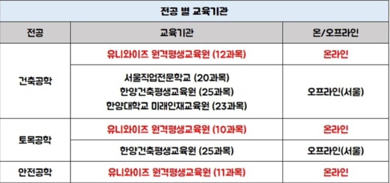 경력수첩 발급 조건 총족을 목적으로 건축공학, 토목공학 학사학위를 취득하려는 학습자들이 많을텐데요.
