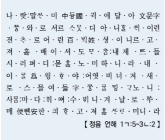 “나랏말씀이 중국과 달라 문자와 서로 통하지 아니하므로,