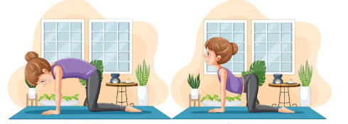 고양이/소 자세 (Cat-Cow Pose): 허리와 등을 부드럽게 풀어주는 데 탁월합니다.