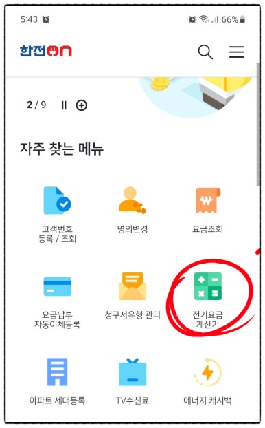'전기 요금 계산/비교' 메뉴를 선택합니다.