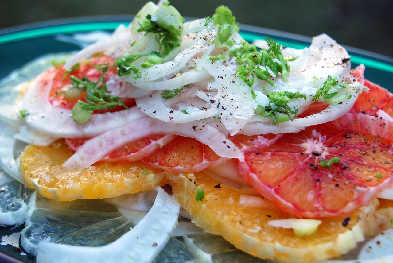 어린잎 채소에 감귤 조각, 아보카도, 견과류를 넣고 발사믹 드레싱을 더하면 상큼한 샐러드 완성!