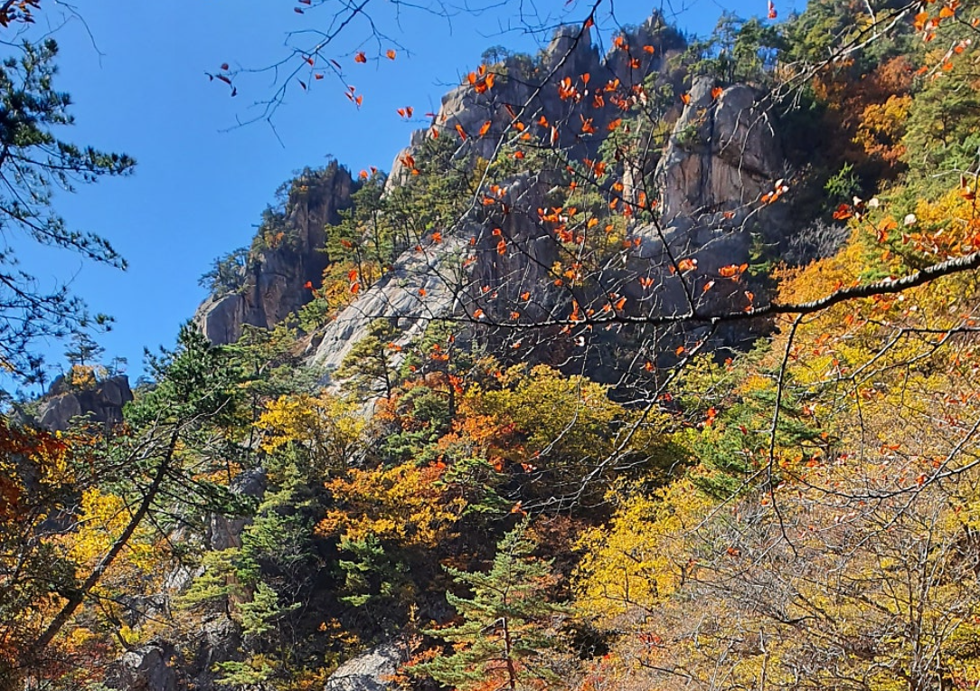 붉은 단풍과 암벽이 어우러진 절경으로 유명합니다.