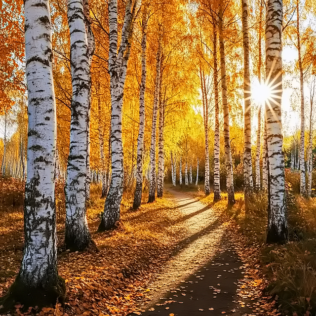 자작나무 숲과 붉은 단풍나무가 어우러져 이색적인 가을 풍경을 선사합니다.