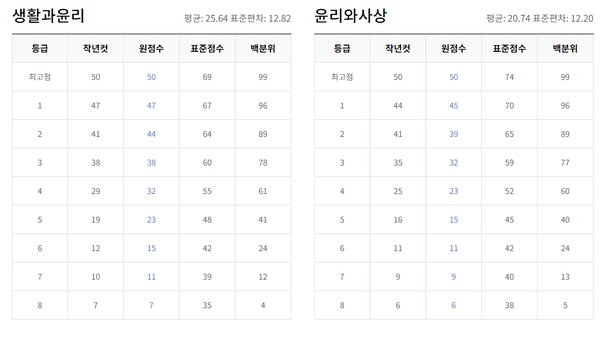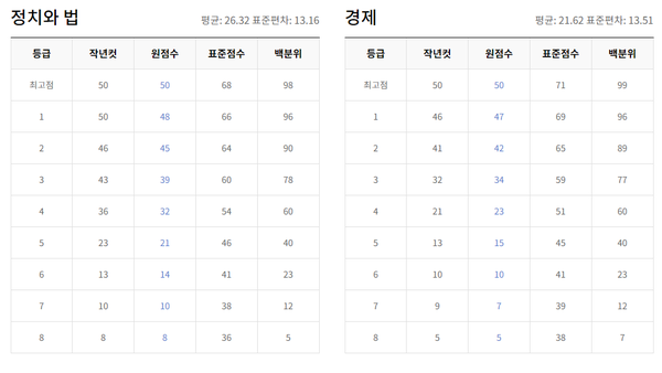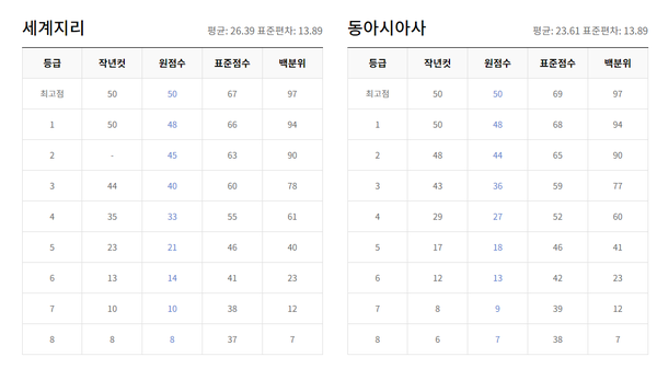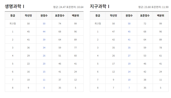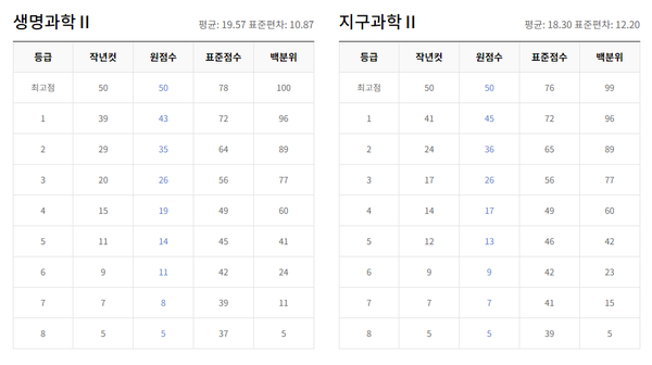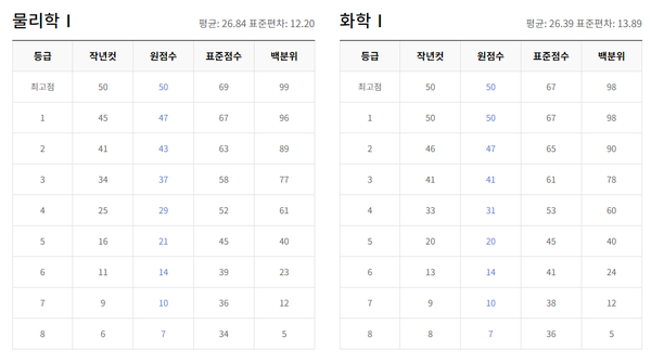 탐구 과목은 과목별 난이도에 따라 등급컷이 크게 다를 수 있습니다.