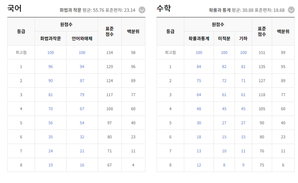 등급컷은 각 과목별로 수험생들이 받은 점수에 따라 상위 몇 %에 속하는지를 나타내며,