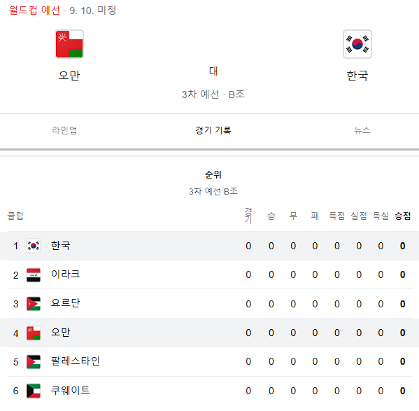 대한민국은 B조에 속해 오만 외에도 이라크, 팔레스타인, 요르단, 쿠웨이트와 경합을 벌이게 됩니다.