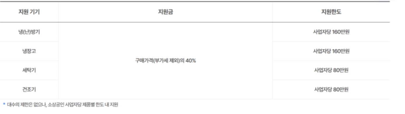 * 세탁기, (의류) 건조기 : 각각 사업자 당 최대 80만 원