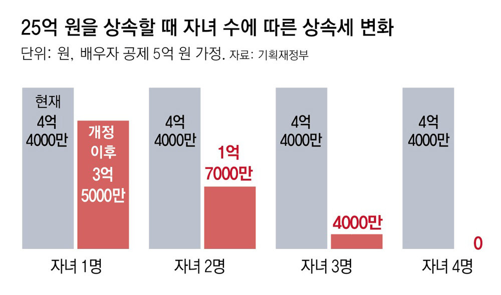 특히 자녀 1인당 공제를 현행 5천만원에서 5억원으로 대폭 확대한다.