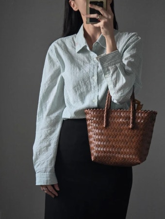 여기에 라탄백이나 스트랩 샌들을 매치하면 스타일은 물론 편안함까지 챙길 수 있어요.
