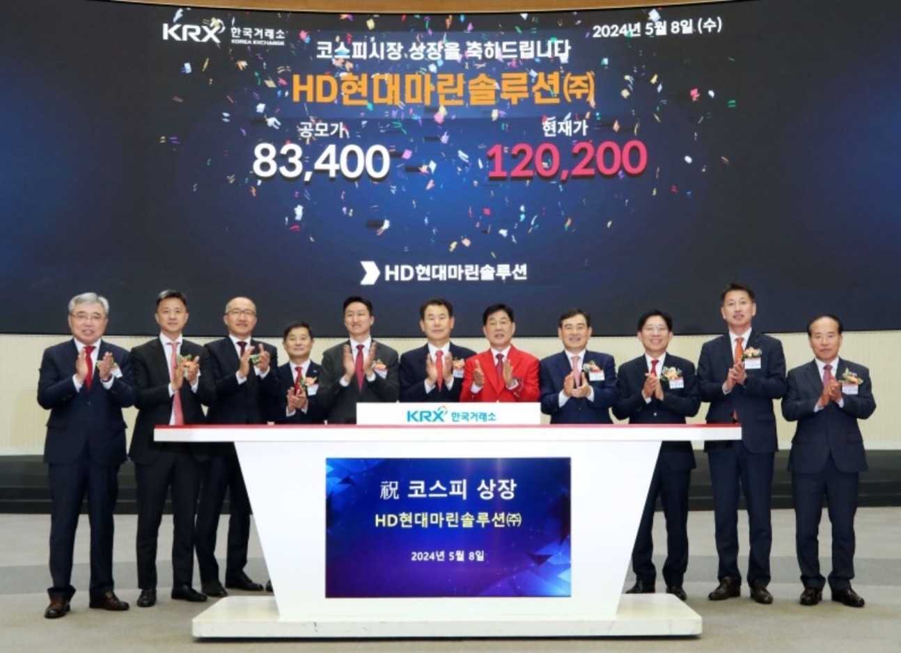 해양산업 종합솔루션 업체 HD현대마린솔루션이 코스피 상장 첫날 공모가의 100% 가까이 오르며 장을